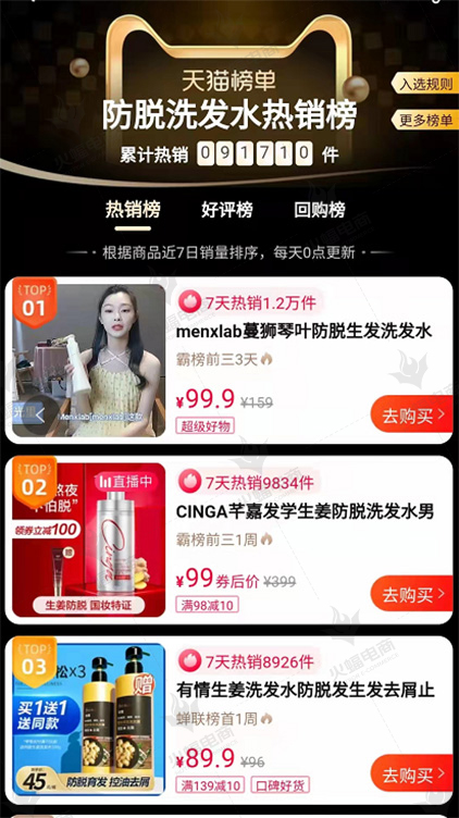 1.产品精准定位:通过生意参谋和全网防脱发洗发水爆款数据进行分析,计算出市场容量有一定体量且上升速度快的价格段,顺利挖掘出产品的差异化卖点。